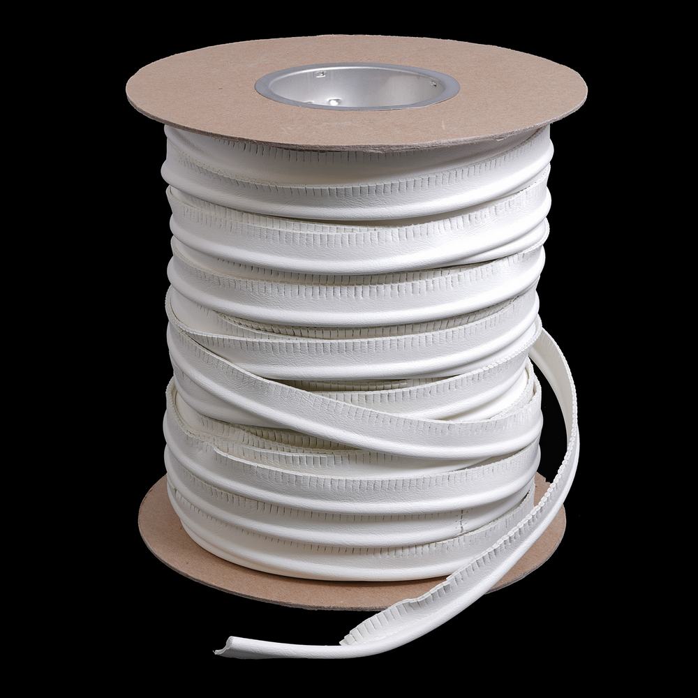 The Nassimi Seaquest Welt is a high-quality marine upholstery piping designed to enhance the aesthetic of seating while providing durability against marine conditions. Made from poly rayon with an embossed PVC coating, this 5/8 inch Seaquest Welt in Chalk ADF color is part of the Seaquest Collection, matching various vinyl upholstery materials. It is engineered to be UV resistant, mildew resistant, and waterproof, making it perfect for marine and outdoor furniture applications as a marine vinyl trim or boat upholstery welt. With a length of 50 yards, this durable welt is ideal for professional and DIY projects alike, offering a finished and professional look for nautical environments.