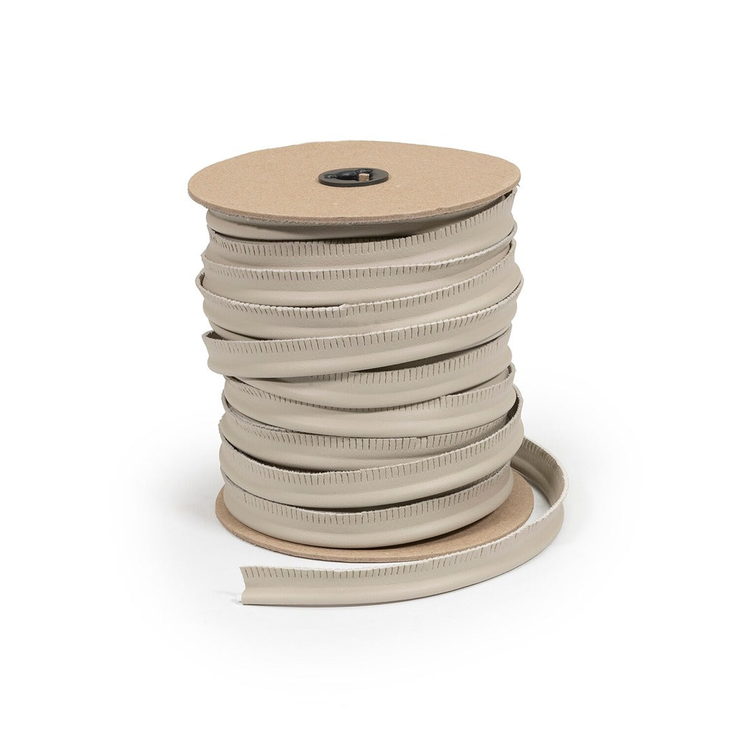 Sunbrella Horizon Capriccio Barley 10200-0028 5/8-Inch Welt offers a durable marine-grade vinyl welt designed for boat upholstery and outdoor trim applications. Engineered from 80% Sunbrella non-phthalate PVC and 20% Sunbrella polyester, this waterproof welt features a Capriccio embossing pattern in a natural barley tone. Its knit-backed construction delivers 4-way stretch with reliable recovery, ensuring shape retention without cracking. This marine vinyl is water, stain, mildew, and UV resistant, providing long-lasting performance and maintaining a smooth, matte finish that stays ultra-soft and comfortable over time. It coordinates seamlessly with Sunbrella woven marine fabrics and is protected by a 3-year warranty against microbial pinking plus a 5-year limited product and labor warranty, making it ideal for professional marine seating trim and upholstery piping needs. The 5/8-inch welt comes in a 38-yard roll width of 54 inches, supporting consistent inventory requirements for quality-conscious shops and restorers.